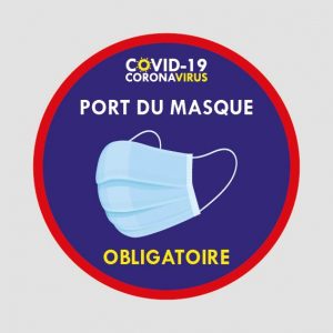 Signalétique adhésive rond « Port du masque obligatoire » avec visuel contre le covid19