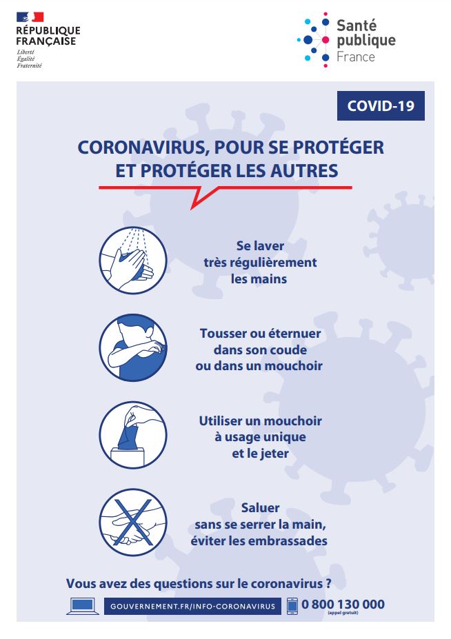 Affiche ou Panneau Officiel Santé Publique France sur les mesures d'hygiène et gestes barrière COVID19